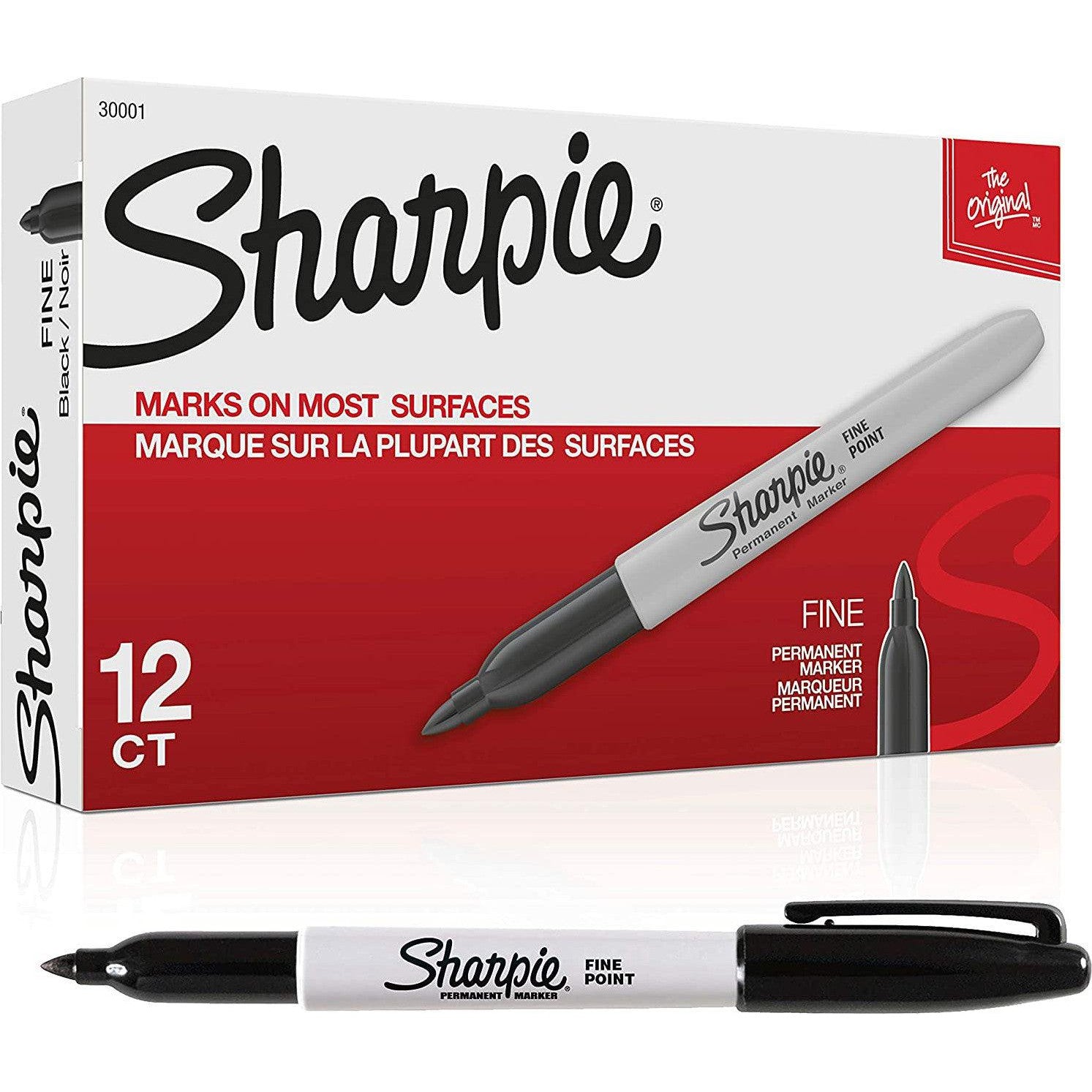 Sharpie Permanent Markers, Fine Point, Black, 12 Count